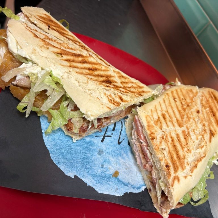 SOLOMILLO DE CERDO) con jamon serrano, pimiento frito, lechuga y mayonesa. 8€